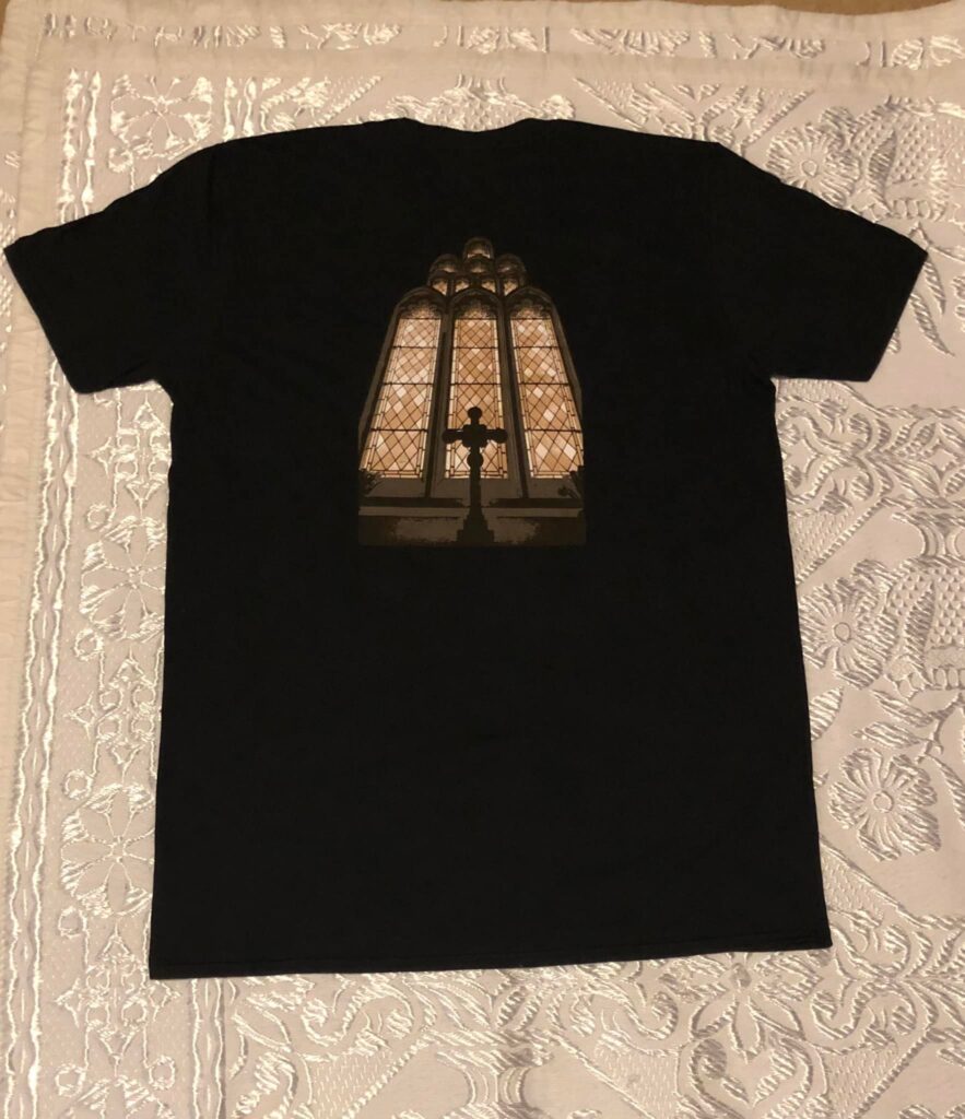Two new shirt designs are now available - one featuring a front design with artwork from ‘Closer to God’, and the other a simple logo design with a stained glass church window on the back.