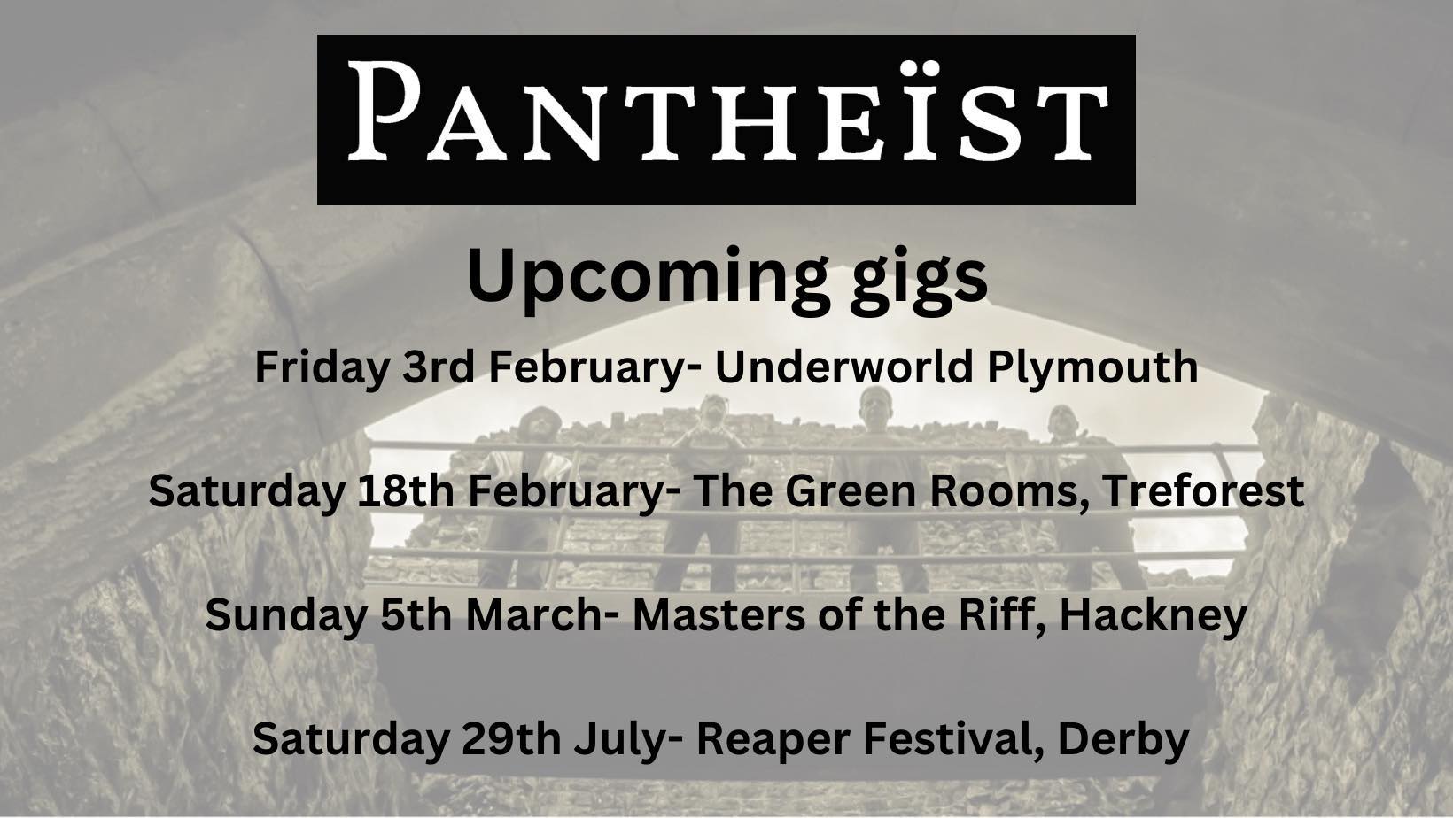 Pantheïst will be playing a number of gigs in the UK and beyond in 2023 - including in Plymouth (3rd February), Treforest (18th February), London (5th March) and Derby (29th July). Keep your eyes peeled on our Live page for all of the latest information about these and all of our upcoming performances.